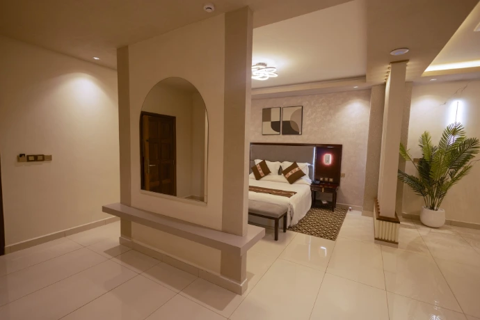 Our spacious Luxury Two Bedroom Apartment is thoughtfully designed to provide exceptional comfort and privacy for families, groups, and long-stay executive guests. The apartment features two elegant bedrooms with king-size beds, a separate stylish living and dining area, and modern bathrooms equipped with both a shower and a bathtub for a relaxing stay experience.